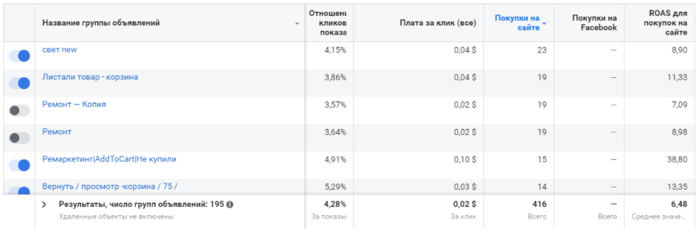 Покупок- 416 ROAS -6,48